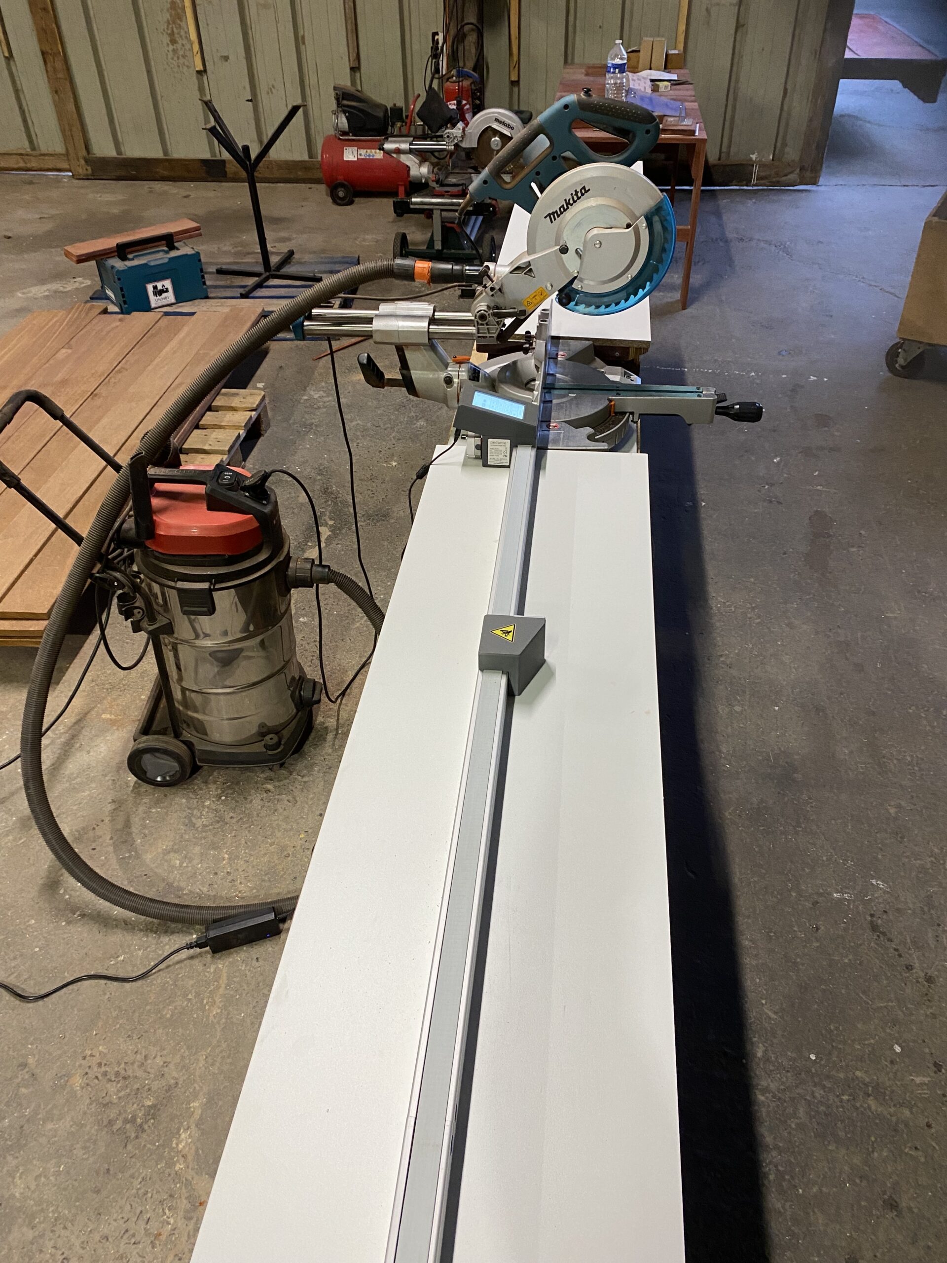 Occasionally hitting the stop block with material happens in normal workshop work, especially when handling long or heavy pieces. Unlike manual stops that can shift and cause wrong cuts, the system automatically keeps its position.