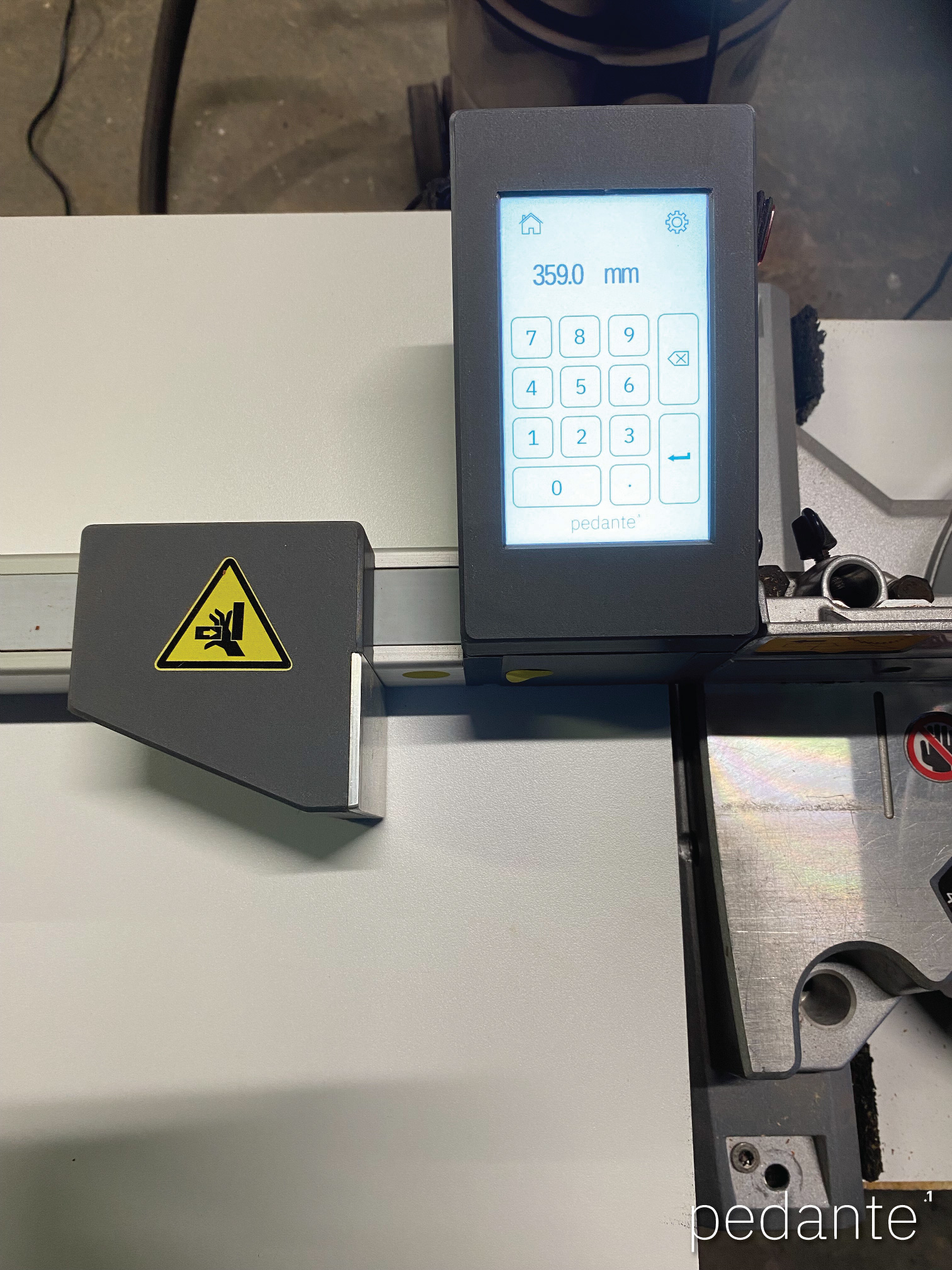 After homing, enter the required length on the touchscreen and press Enter. The stop block moves automatically to the target position and holds it in place for cutting.